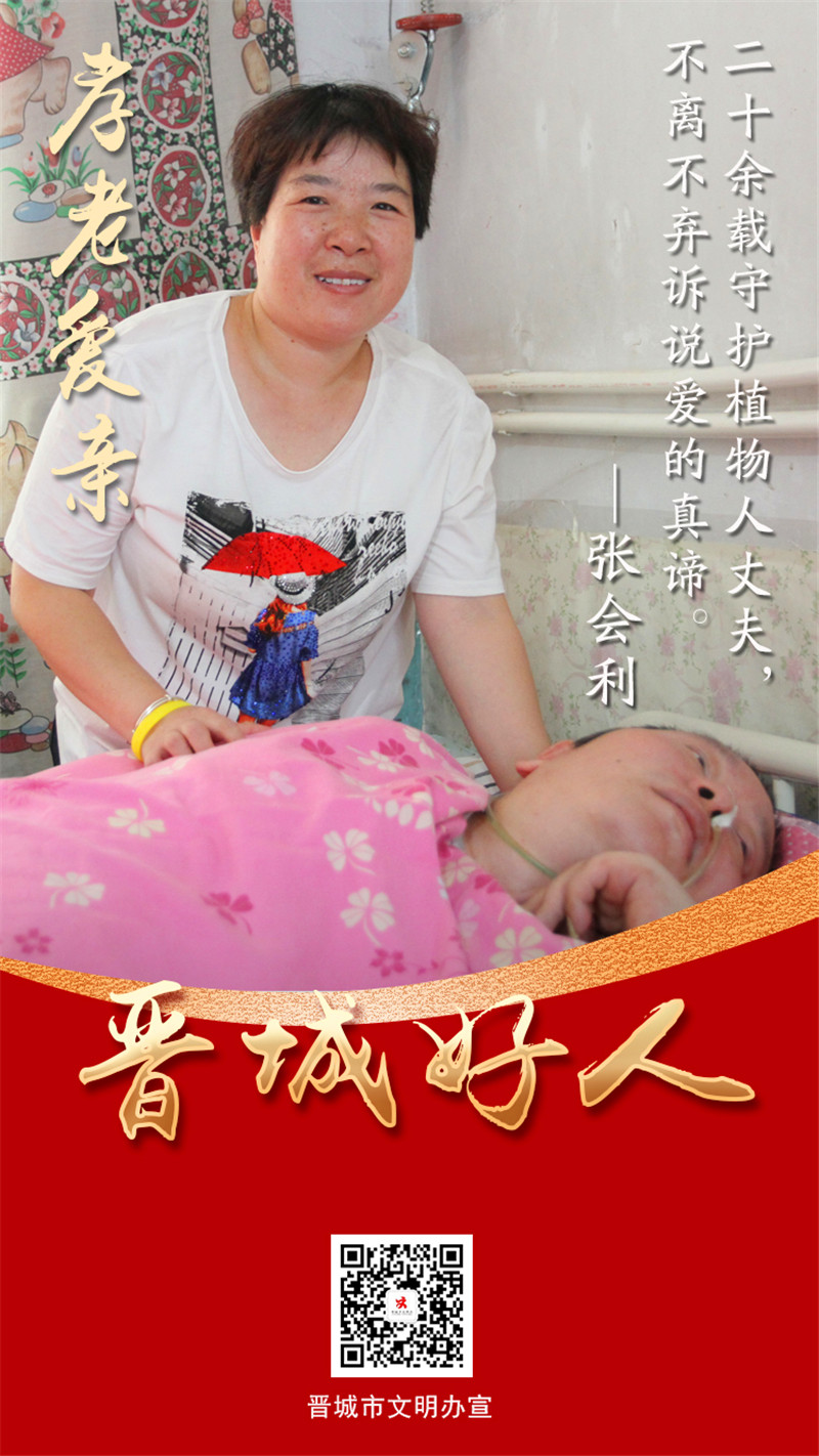 女,1976年11月生,山西兰花机械制造有限公司待岗职工。2009年,丈夫在工作中不幸受伤,成了植物人。望着床上一动不动的丈夫、看看正在上学的女儿和四个老人,凭着“我是家里的主心骨,一定不能倒下”的信念,她坚持了十几年。虽然繁重的生活让她的身体严重透支,但她从未想过放弃。她在心中默默向丈夫承诺:我一定要给他一个完整的家。