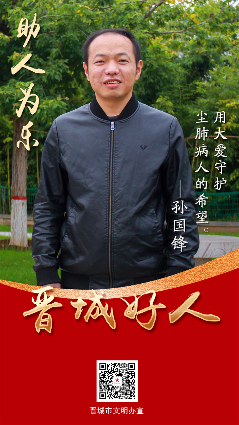 男,1989年7月生,晋城市质量健康技术保障中心质量负责人。2017年,他加入中华社会基金会发起的“大爱清尘”公益组织,通过医疗救助帮助20多名尘肺病农民工免费进行洗肺手术,看到大部分家庭因病致贫,他积极申请“帮尘肺妈妈撑起家”创业帮扶项目及医疗救助,帮助大部分困难家庭渡过难关。