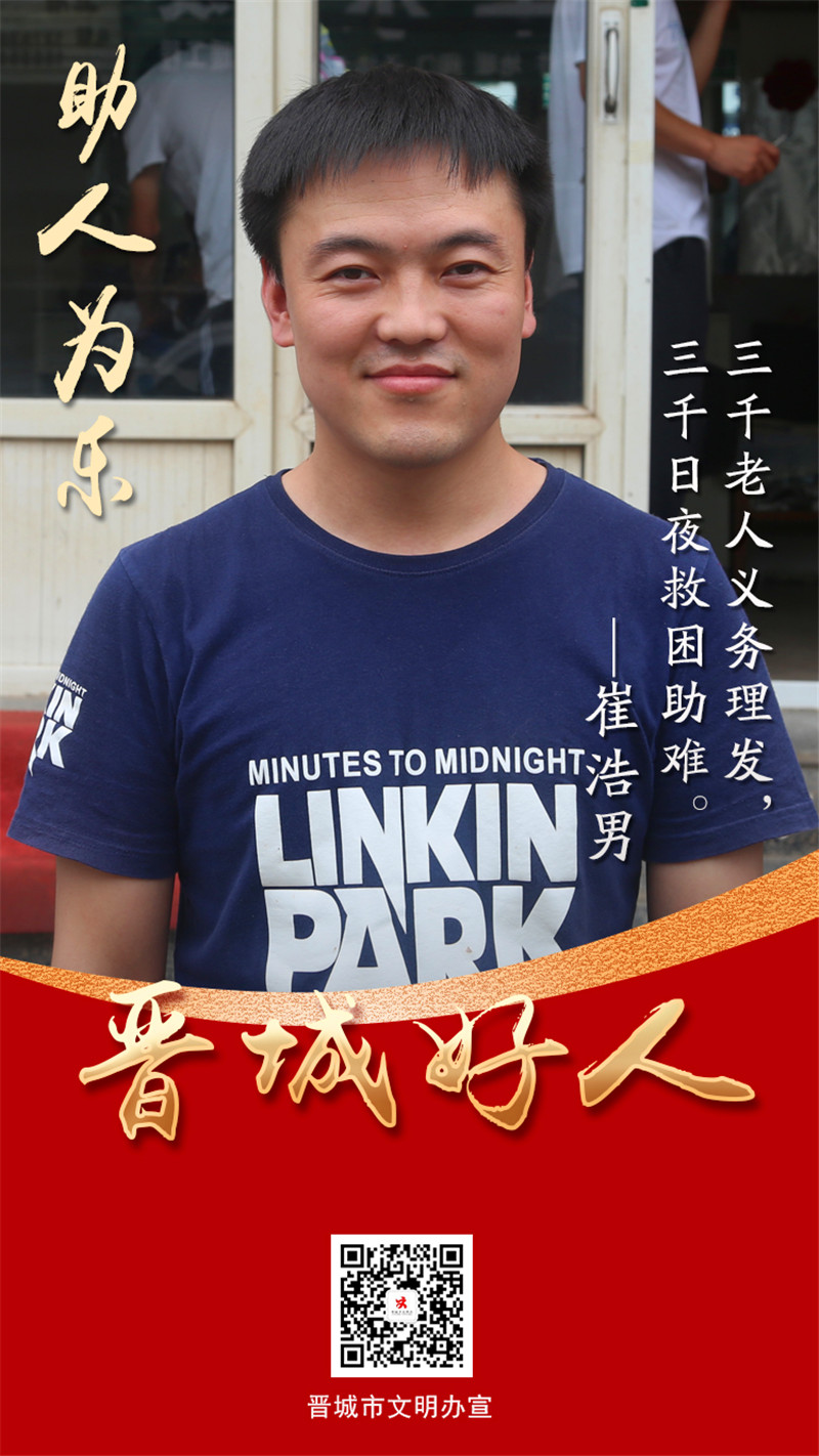 男,1993年8月生,阳城县东关红连理发店员工。他先天聋哑,但身残志坚,跟着栗红连以理发为生。2018年来,共捐款3000多元,救助困难家庭38户,参加各种公益活动200余次,为3800多位老人免费义务理发。疫情期间,他参与协助劝返点卡口值班值守工作,还为在各劝返点值班值守1400余人义务理发,并积极主动捐款900元,为抗击疫情献出了自己的爱心。
