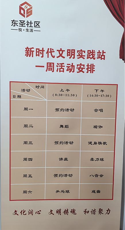 东圣社区新时代文明实践站一周活动安排。党建 摄