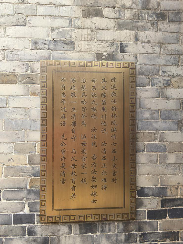 陈氏家风家训。党建 摄