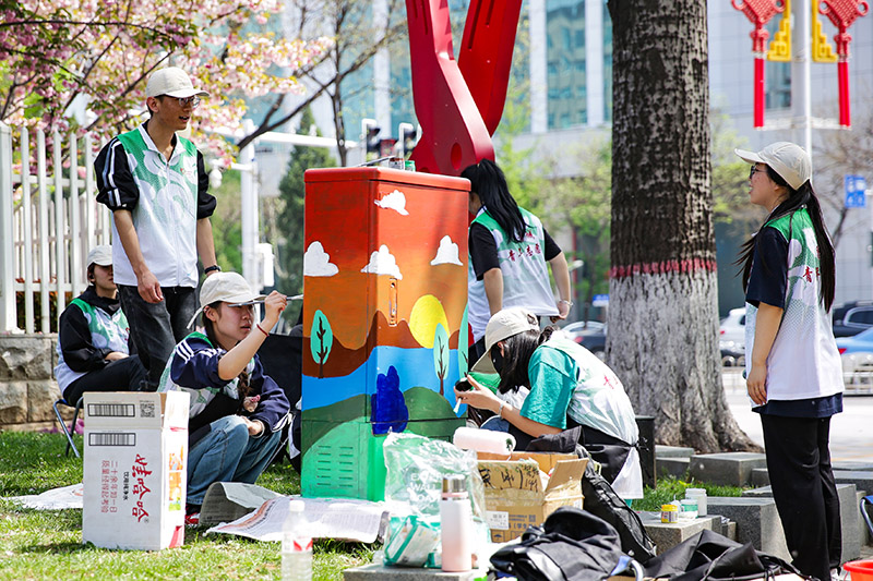 晋城市青年志愿者对市区道路旁的变电箱进行彩绘美化,原本单调、冰冷的变电箱被色彩斑斓的图画覆盖,实现“隐藏化”“景观化”的美丽提升,点亮了城市街景。司浩金 摄