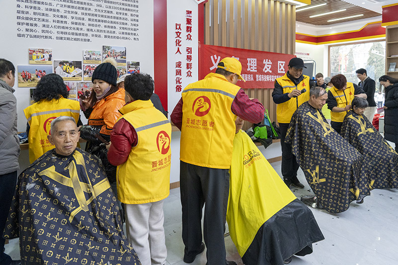 晋城市志愿服务活动中心。2023年3月中心投入使用,每周组织开展义务理发、法律援助、爱心义诊等志愿服务活动,做到“我为人人、人人为我”的志愿服务制度化、常态化、便民化。李剑琦 摄