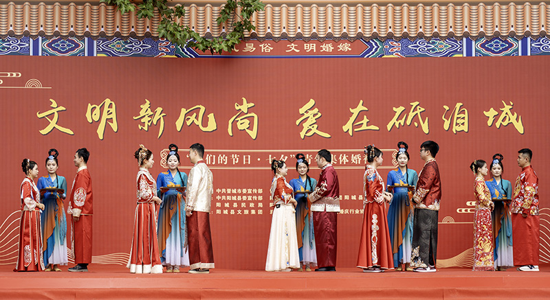 “我们的节日·七夕”青年集体婚礼在阳城县举办。新人们用实际行动告别“大操大办”,树立婚事新办、简办的社会新风。苗慧慧 摄