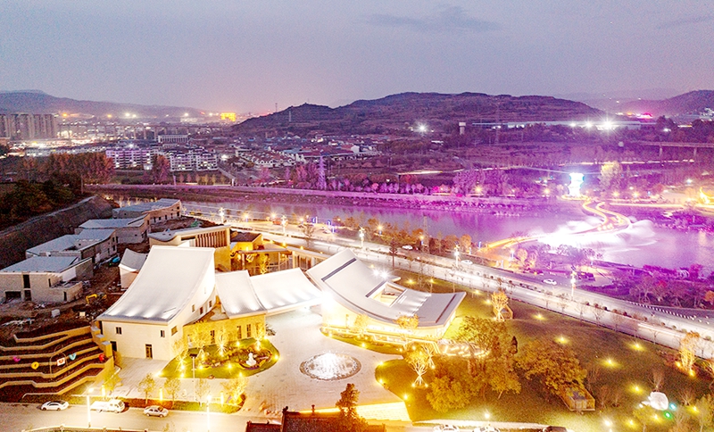 图为夜幕下的沁水县树理小镇。记者 袁文忠 摄