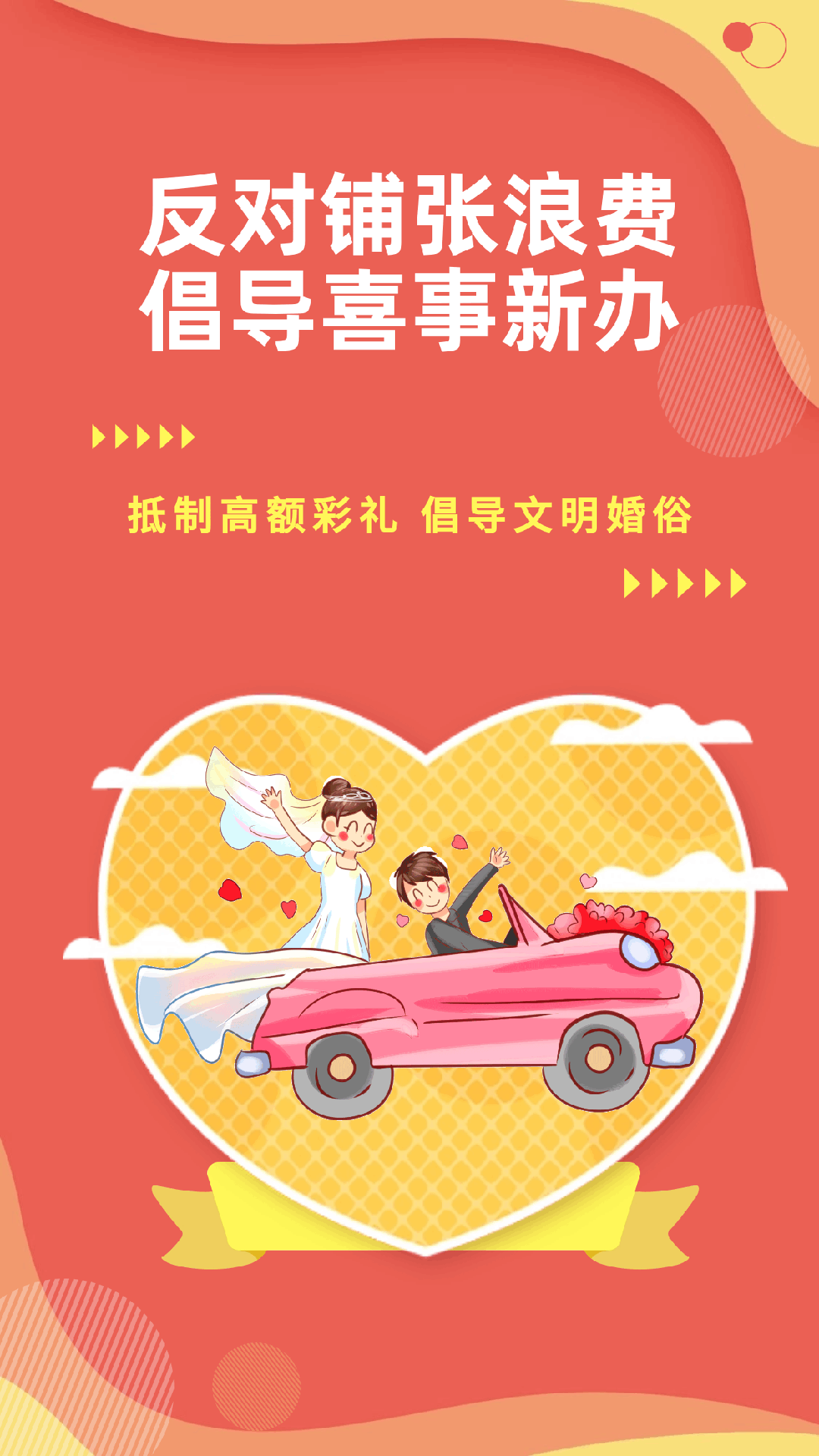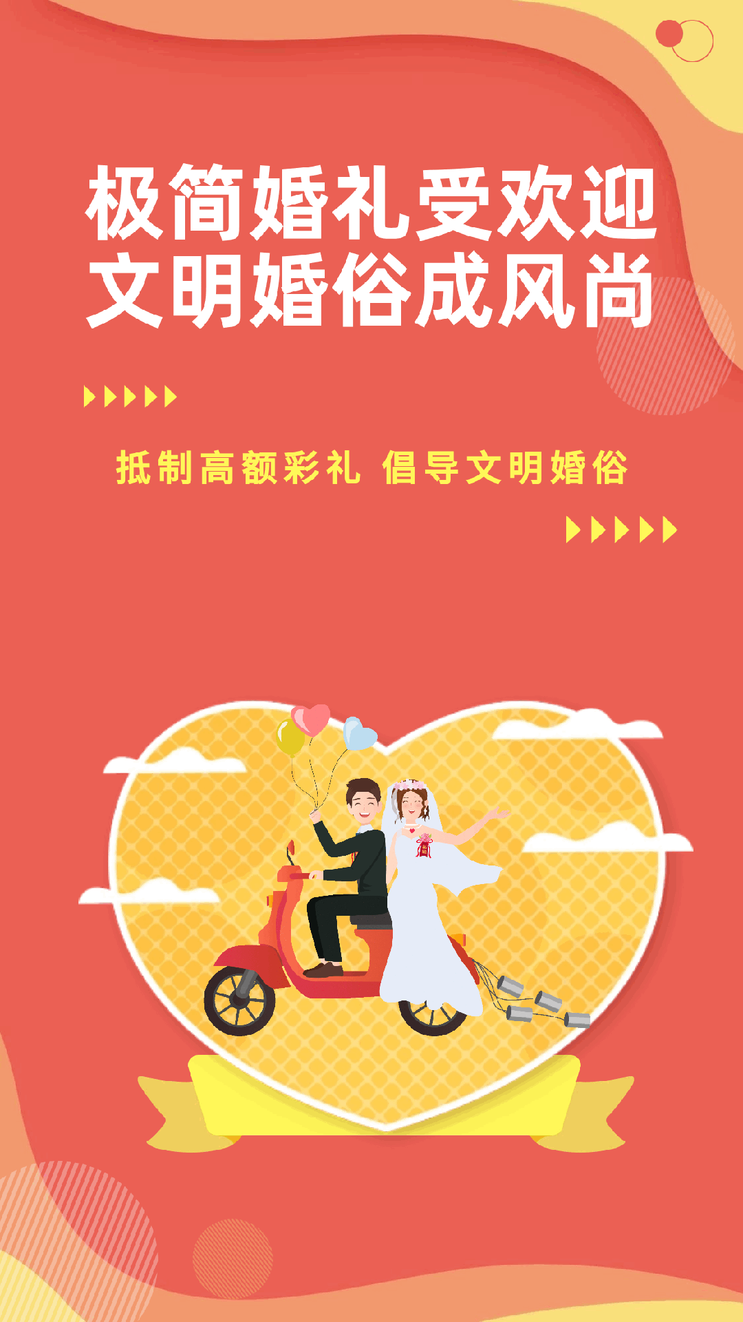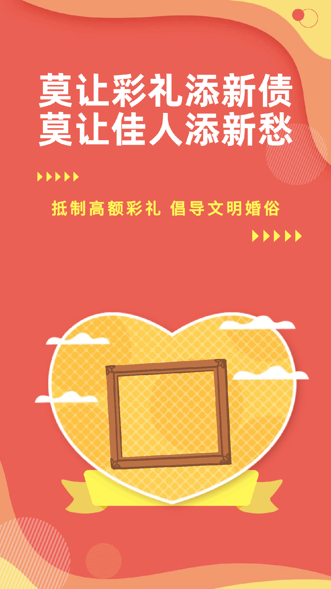 幸福的婚姻是男女青年的梦想,美满的家庭是社会和谐的基础。为弘扬中华传统美德,营造一个简朴、文明的婚庆氛围,引导新人树立正确的婚恋观,让我们一起抵制高额彩礼,树立文明婚俗新风,为爱“减负”,为幸福“加分”。