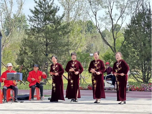图为尉迟村老年说唱艺术团表演快板《赵树理与李有才板话》