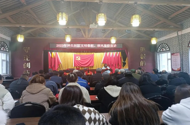 坪头社区组织开展各类交流会、宣讲会、道德讲堂等10余场次。通过居民推选、党组织推荐等形式,选举有威望的老党员、乡贤能人、离退休村干部、移风易俗先进典型等组成道德评议会,通过走访入户、说事评理、正反对比等方式开展评议,持续开展道德模范、星级文明户、“好婆婆好媳妇”等评选活动,引导和激励居民以榜样为引领,遵纪守法、移风易俗,营造出崇德向善、见贤思齐的良好社会风尚。