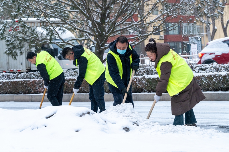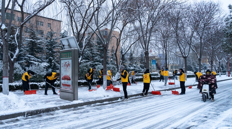 市文明办组织市中院、市检察院、市公安局、市委网信办、市统计局、市民政局、市市场监管局、市城联社、合为集团、华洋集团、祥达集团、洁霸清洁等各级文明单位及社会志愿服务组织迅速行动起来,开展清雪志愿服务活动。