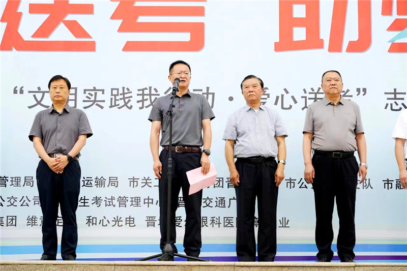 市委宣传部副部长市文明办主任王京致辞:“‘爱心送考’队伍持续壮大,覆盖范围更加广泛,已经发展成为引领我市精神文明建设的一个闪亮的公益活动示范品牌。”